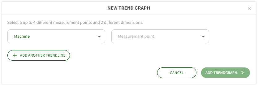 Select which machine and trend line (measurement point) you would like to plot and click on the ADD TREND GRAPH button. You can add up to four different trend lines within the same graph.