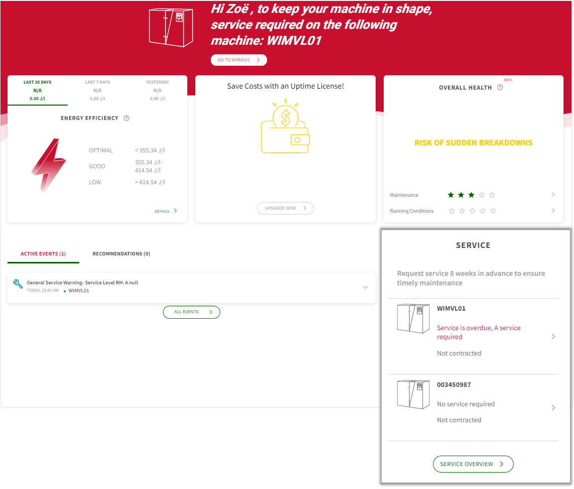 You can also find the service overview by clicking on the SERVICE widget in your dashboard.