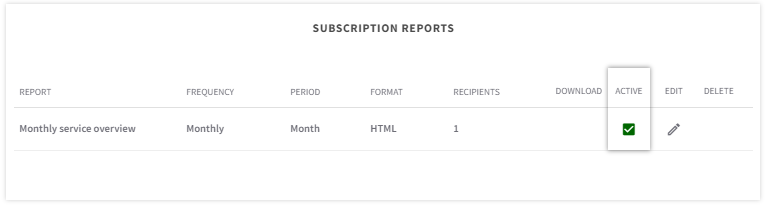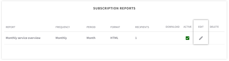 After creating a subscription report, you can still edit the settings by clicking on the pencil icon in your overview.
